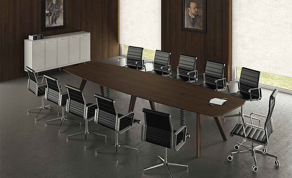 Mesas de consejo con capacidad a partir de 10 personas con la posibilidad de realizar múltiples configuraciones y formas para salas representativas. Se utiliza madera de primera calidad lo que le confiere un gran prestigio y representatividad. La sencillez y la armonía de sus líneas generan un producto armónico que tiene el equilibrio perfecto entre la calidad y el precio.
