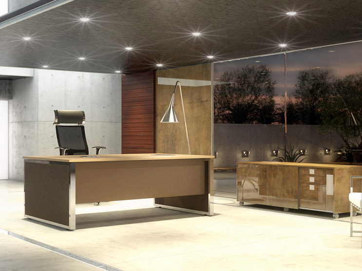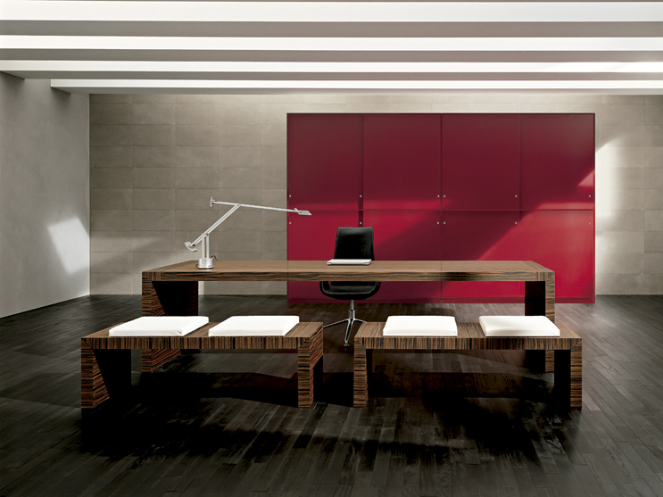 La serie Kyo es otra alternativa para los amantes de los muebles de madera para despachos, la diferencia es que los muebles de esta serie están fabricados con madera de ébano o zebrano claro.