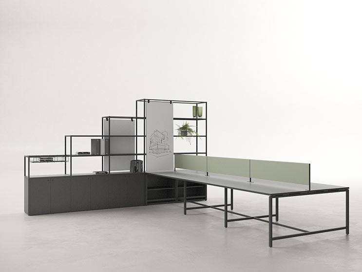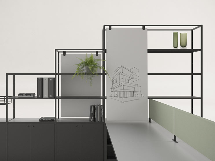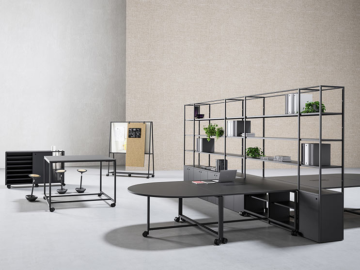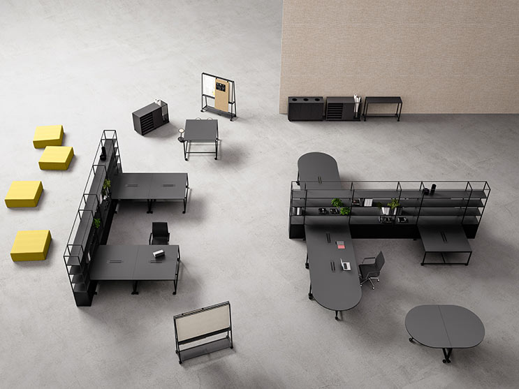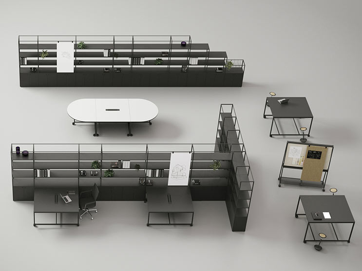 Estructura modular. ATELIER abre nuevas perspectivas para la planificación de la oficina, ofreciendo un entorno de trabajo atractivo, práctico y creativo al tiempo que puede responder a los cambios dinámicos en las estructuras de la oficina.