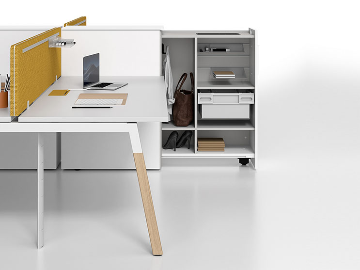 Se trata de un sistema de diseño modular que permite crear ambientes direccionales, operativos y de co-working