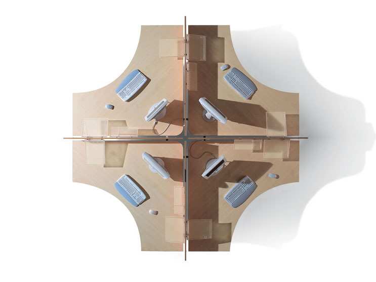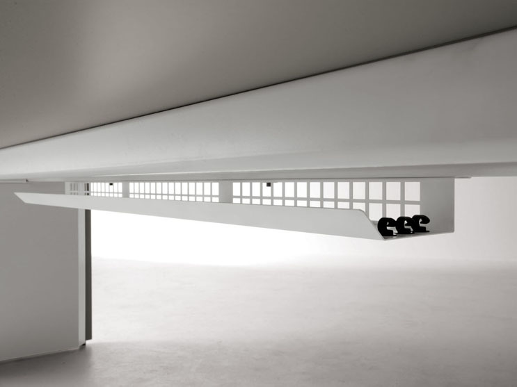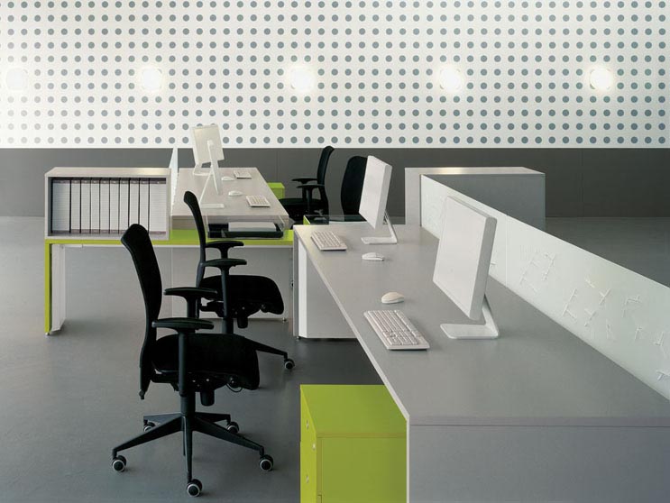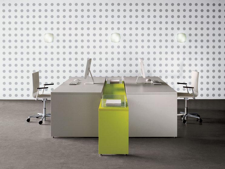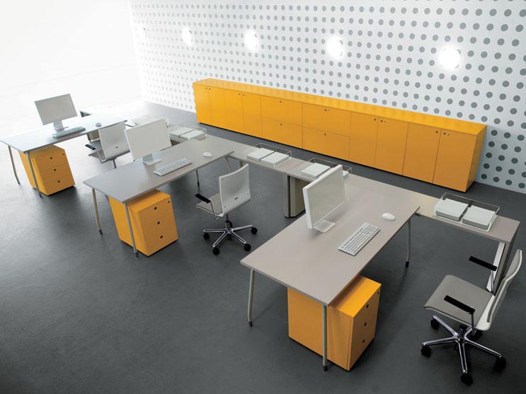 Las tres dimensiones de la oficina de hoy: libertad, habitabilidad, personalidad. Una solución única: la colección Tre. Mesas largas componibles, elementos de servicio versátiles, colores y accesorios que transforman cada puesto de trabajo en un pequeño universo personal. La mesa “Extra Long” puede alcanzar una longitud de 360 cm y se propone en una gama completa de variantes: del simple escritorio con costados, a la mesa con configuración en forma de puente para superponer a la mesa de servicio y crear composiciones que amplían las funciones tradicionales y los valores estéticos de los puestos operativos. El mueble de servicio ofrece una superficie de apoyo para las tecnologías y los materiales de trabajo que se comparten con los compañeros de trabajo, pero que al mismo tiempo representa un elemento estético, introduciendo la característica expresividad de los colores de tendencia: granate, verde y amarillo, combinado con el gris niebla y el roble. Una amplia propuesta de carpeteros y armarios ofrece una respuesta a todas las exigencias prácticas y estéticas del espacio de oficina: sin puertas, con puertas de madera o de vidrio. Además, se pueden formar composiciones múltiples de armarios adosados, sobre los cuales se colocan las encimeras de acabado con cantos redondeados.