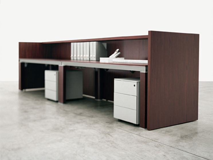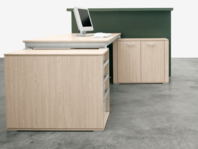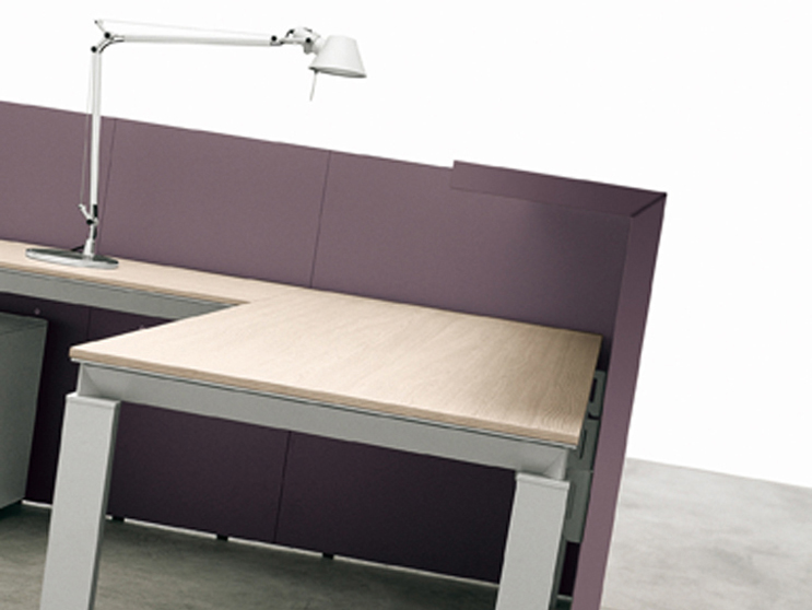 Han permite armonizar ambientes de trabajo. Han expresa un estilo básico con una mezcla de materiales capaces de crear una estética positiva, gracias a su fuerza esencial y vital de la estructura de aluminio de sus mesas.