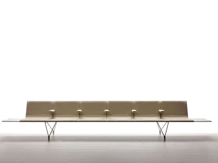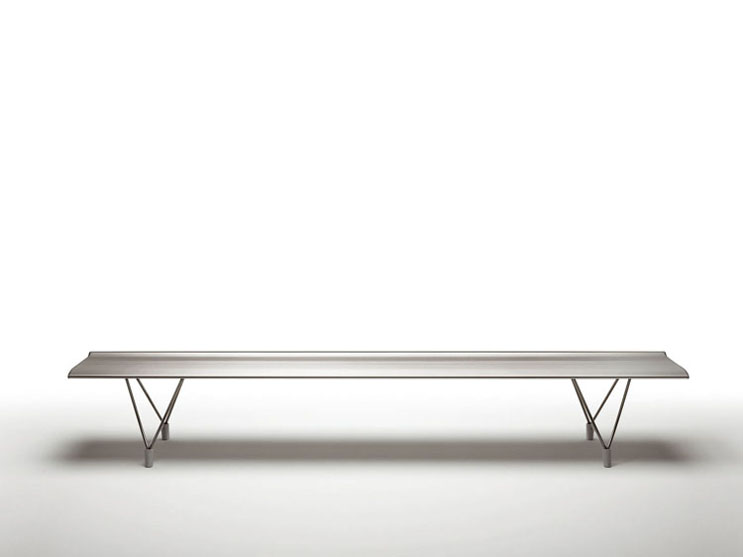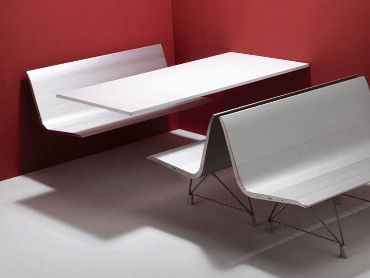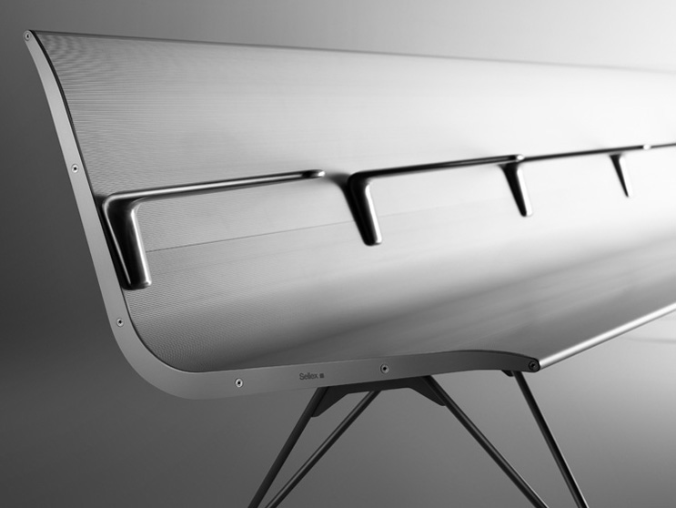 Aero es el resultado feliz de una conjunción de minimalismo, ligereza, confort y robustez. Todo ello basado en perfiles de aluminio estriados, que se proyectan en el plano como el ala de un avión. Los materiales empleados en su construcción, aluminio y acero inoxidable, permiten su utilización tanto en espacios interiores como a la intemperie.
