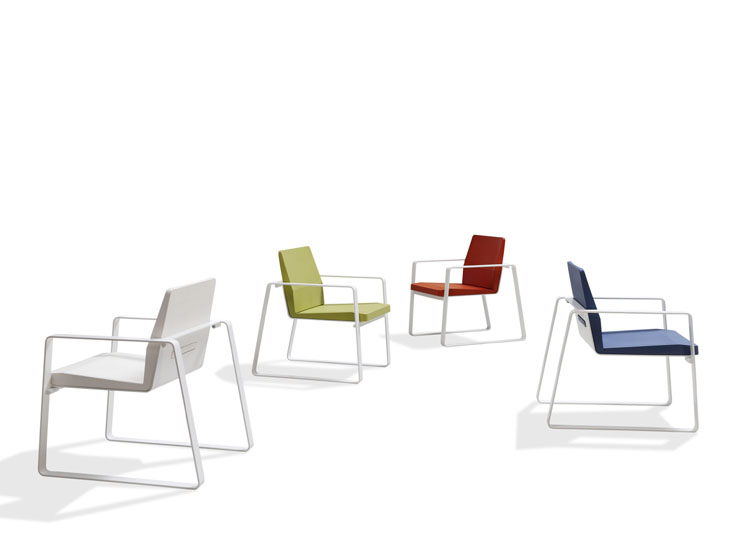 Calma representa el estilo sobrio. Un programa de sillas, sillones y bancadas para uso colectivo, con un diseño atemporal y gran impacto visual. Calma es sencillo, cercano y generoso. La integración en espacios abiertos se alcanza con la utilización de sus colores frescos, luminosos y mediterráneos. Desarrollado tecnológicamente por I+D de Dileoffice sólo con dos materiales: elastómero de densidad media , para el asiento y respaldo y aluminio para su estructura.