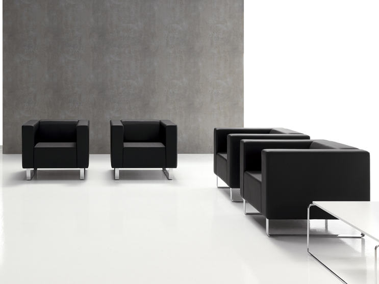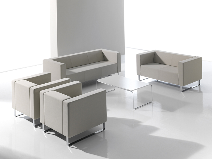 CUERPO DE LOS SOFÁS. Estructura interior de madera con sistema de suspensión de asiento por cintas elásticas. Tapizados con espumas de poliuretano de densidad variable y alta resistencia. Los sofás se tapizan en todos los tejidos C1, C2, C3, C4, C5 y C10. PATAS. Fabricadas con pletina de acero acabadas en cromo o en color aluminio, negro o blanco. Protectores antirayado en contacto con el suelo.