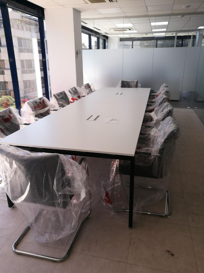 El proyecto corresponde a la ampliación de una oficina para una empresa de ingeniería que cuenta con una gran luminosidad natural. El cliente planteaba la necesidad de incorporar distintos espacios funcionales que permitieran optimizar el trabajo diario y mejorar la organización interna. Entre los requerimientos principales se encontraban la instalación de varios puestos operativos, despachos, salas de reuniones, una zona de office y un área de almacén.